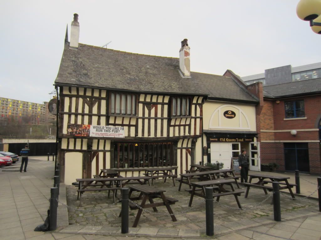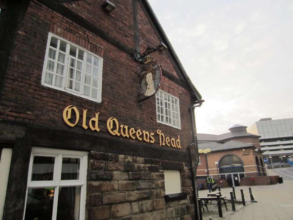 After finishing work, I met Peter, one of my drinking partners for the evening (and fellow 366 attempter) in the Old Queen's Head, which is next to Sheffield bus station. From the outside this looks like some olde worlde gem.
